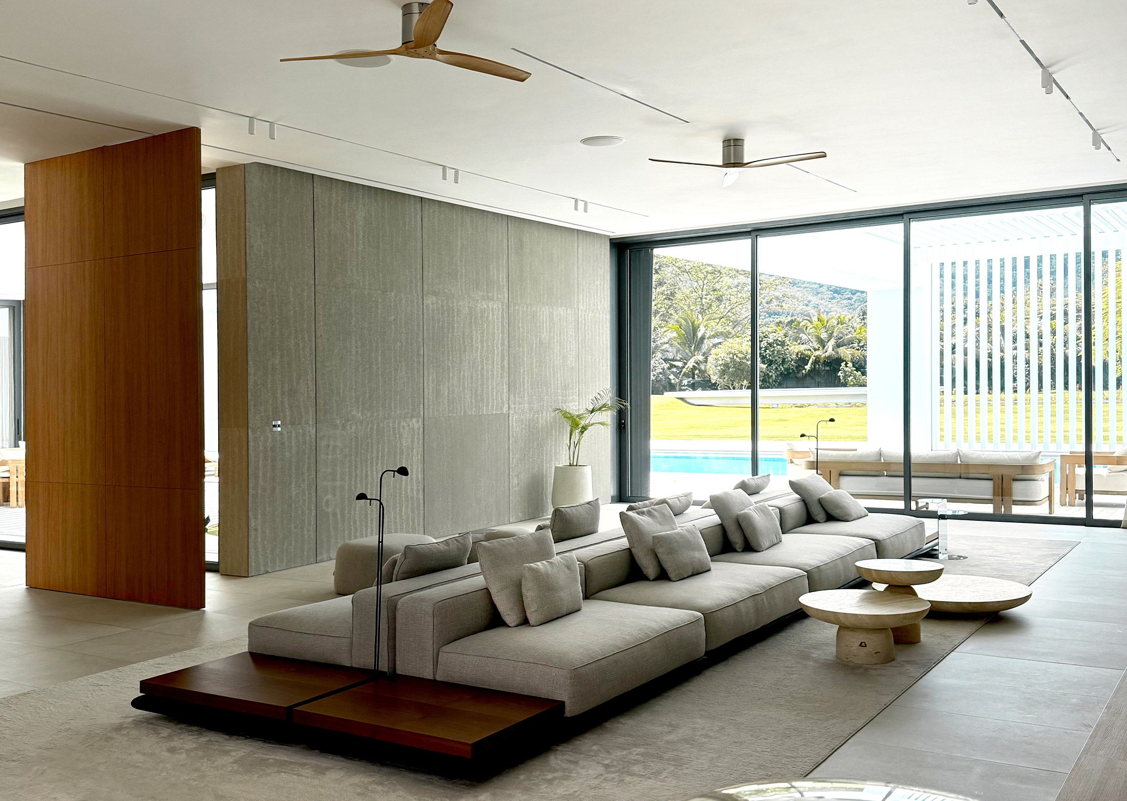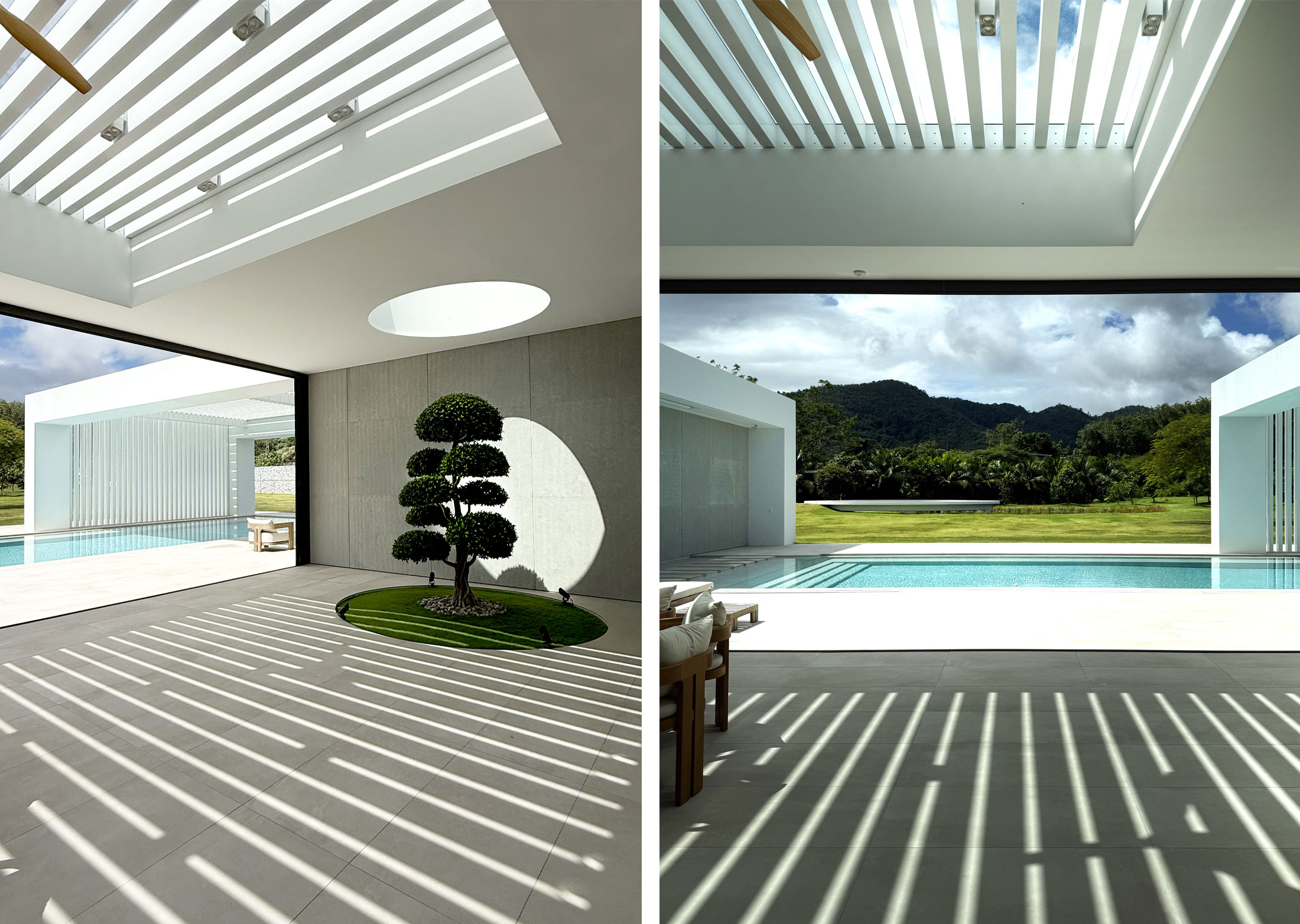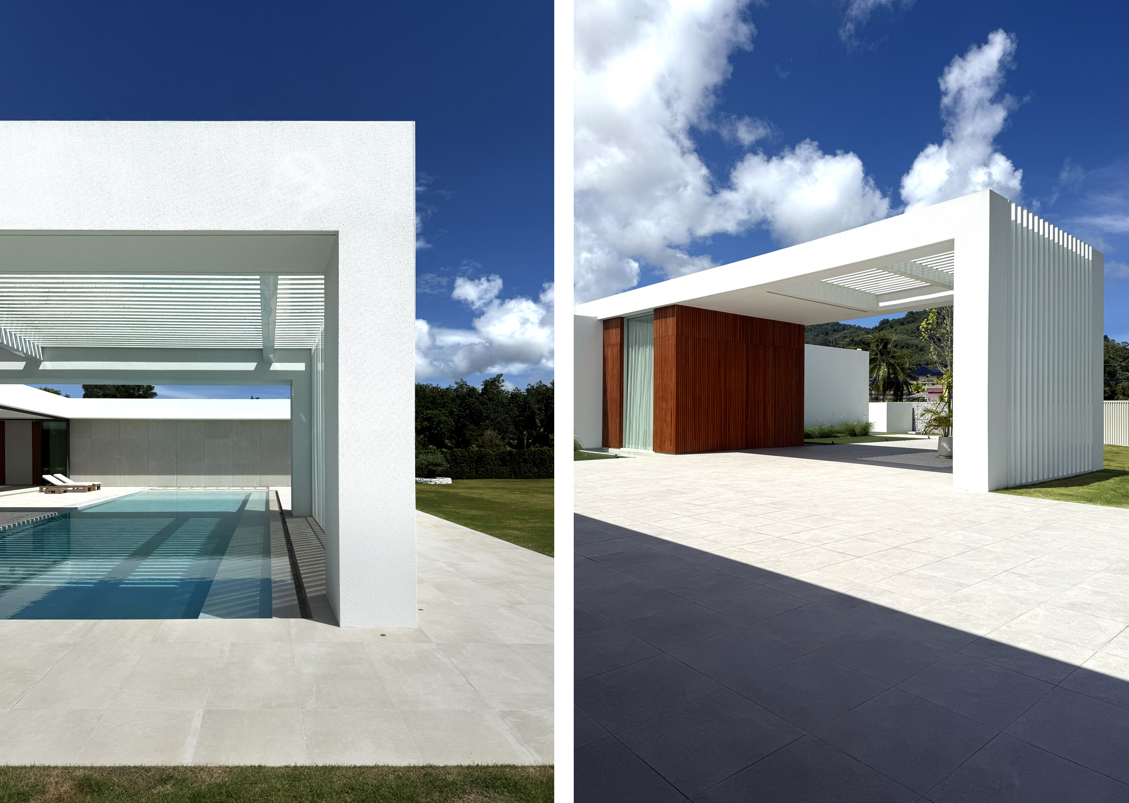 This two-level villa, located in Phuket, Thailand, is a breathtaking example of contemporary luxury living. Set within a private parkland that features an iconic-shaped lake, a 25-meter pool and an orchard, the project’s key components are natural stones and bright materials, which create a sleek, contemporary aesthetic that is both timeless and elegant. The interior is bathed in natural light thanks to the use of glass walls and big windows, which also offer amazing views of the surroundings.